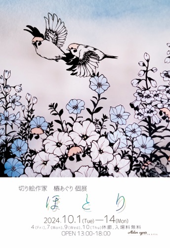 2024年11月10日 / 最終更新日時 : 2024年11月24日 椿あぐり 個展 個展「ほとり」開催のお知らせ 椿あぐり企画個展 『ほとり』 会期:2024.10.1-14(4,7,9,10休廊) 13:00-18:00会場:アトリエキプリス(大阪市中央区中本5-27-15 なんでもやビル3階)